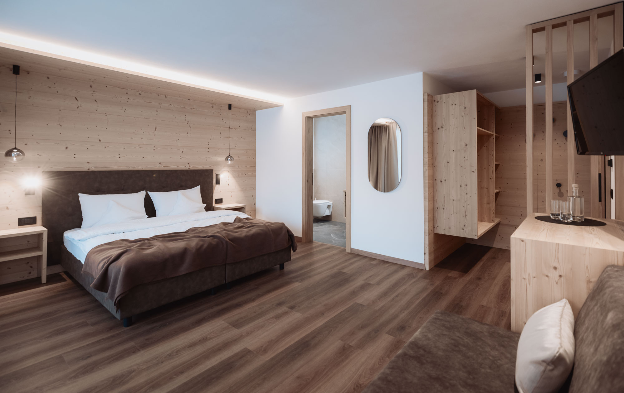 The new Lavarella Rooms, located on the top floor, offer a spectacular view over the mountains of San Vigilio.
