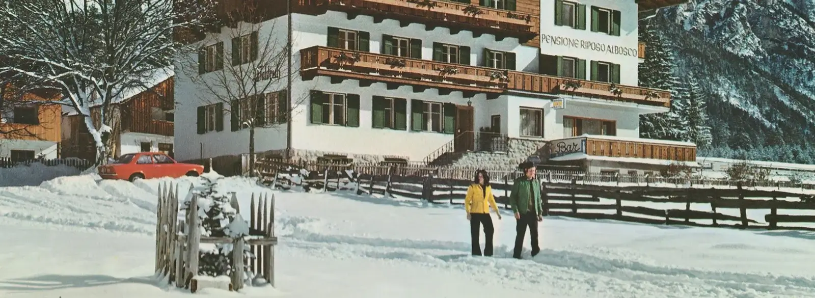 L’Alto Adige è una delle regioni più ricche d’Italia e d’Europa. È conosciuto soprattutto per il meraviglioso paesaggio montano che attira ogni anno un gran numero di turisti. In realtà, il turismo in questa zona alpina si è sviluppato solo gradualmente. Per molto tempo, le Alpi non erano altro che un ostacolo spiacevole durante il viaggio verso il sole dell’Italia. Verso il 1800, quando il sud tirolese Andreas Hofer guidò una rivolta contro Napoleone, la regione divenne nota in tutta Europa per la prima volta. Il Tirolo era un luogo di cura amato già da tempo, ma solo tra le classi sociali superiori. Ogni estate i ricchi commercianti cittadini raggiungevano le montagne tirolesi per il clima fresco. Il primo vero culmine del turismo in Sud Tirolo è stato raggiunto poco prima dell’inizio del ventesimo secolo. Investitori stranieri cominciarono a costruire grandi alberghi in luoghi come Dobbiaco. Anche l’alpinismo iniziò a guadagnare popolarità, a vantaggio di malghe e rifugi. Negli anni precedenti la prima guerra mondiale, il Sud Tirolo era diventato per la prima volta un soggetto da cartolina. Quegli anni furono caratterizzati da alberghi di lusso e sontuose feste dell’alta società. Il turismo di massa della regione cominciò solo più tardi, dopo la prima guerra mondiale, quando l’Alto Adige divenne parte dell’Italia. Gli italiani arrivarono in massa per visitare la regione. Intorno al 1930, iniziò finalmente la scoperta delle Dolomiti a favore del turismo. Funivie, ristoranti, alberghi di montagna, risalgono tutti a questo periodo. Negli anni successivi alla seconda guerra mondiale, molte famiglie iniziarono anche ad affittare camere ai turisti. Da allora, il turismo è cresciuto rapidamente. Poi, con il campione Gustav Thöni, lo sci si diffuse ancora di più e furono costruiti nuovi impianti di risalita e aree sciistiche. In mezzo a questa storia turbolenta, ecco il nostro Hotel Riposo al Bosco.