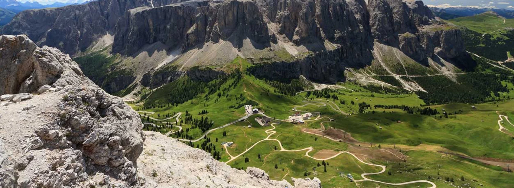 Giro del Sella: La maggior parte delle persone lo conosce con il suo nome italiano, “Sellaronda”. È un tour sciistico unico intorno al massiccio del Sella, che attraversa gli impianti di risalita e le piste dei quattro passi dolomitici, attraversando fitti boschi e offrendo panorami montani mozzafiato. Il tour collega le quattro valli ladine di Val Gardena, Alta Badia, Arabba e Val di Fassa. Pur non essendo tecnicamente difficile, il giro richiede circa sei ore per essere completato, richiedendo un buon livello di allenamento per i circa 40 chilometri di piste. Il tour, che non richiede mai sci né ripetizioni di alcun tratto, attraversa il Passo Campolongo, il Passo Pordoi, il Passo Sella e il Passo Gardena. Si consiglia di partire prima delle 10:00 per assicurarsi di tornare al punto di partenza prima della chiusura degli impianti.